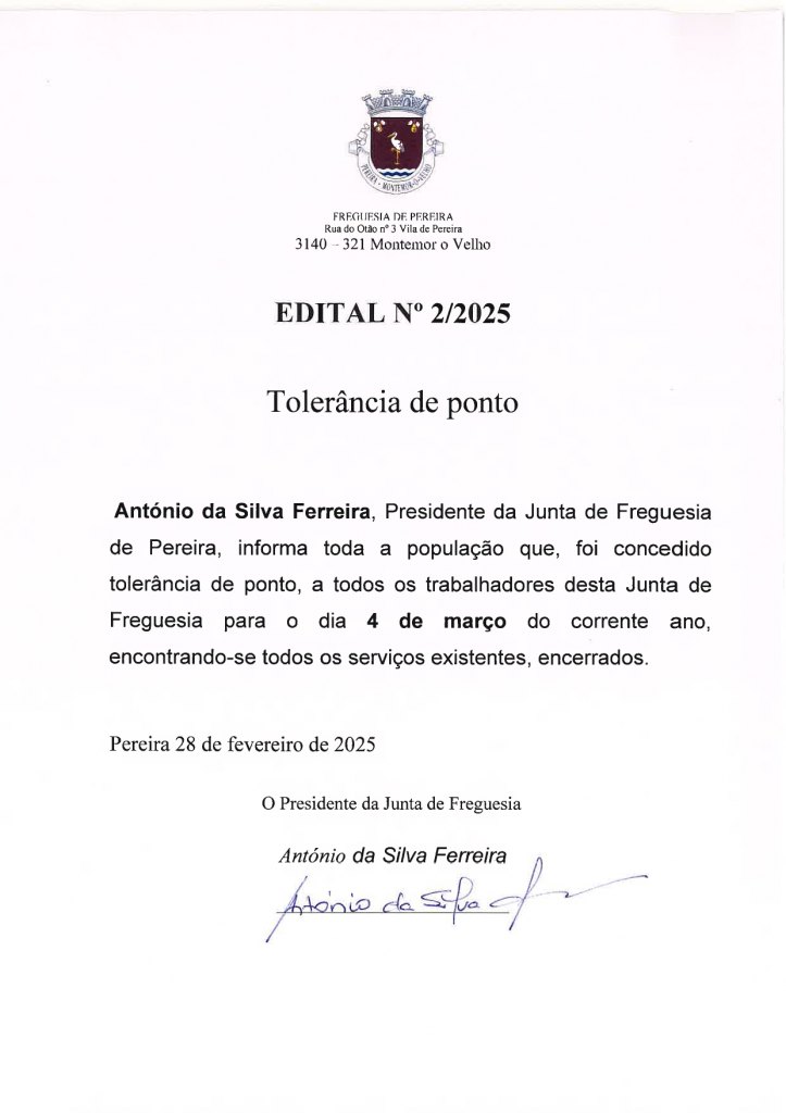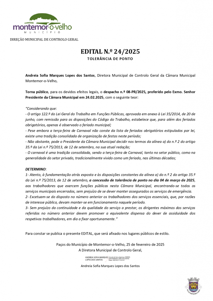 Edital n.º 2/2025 - Tolerância de Ponto