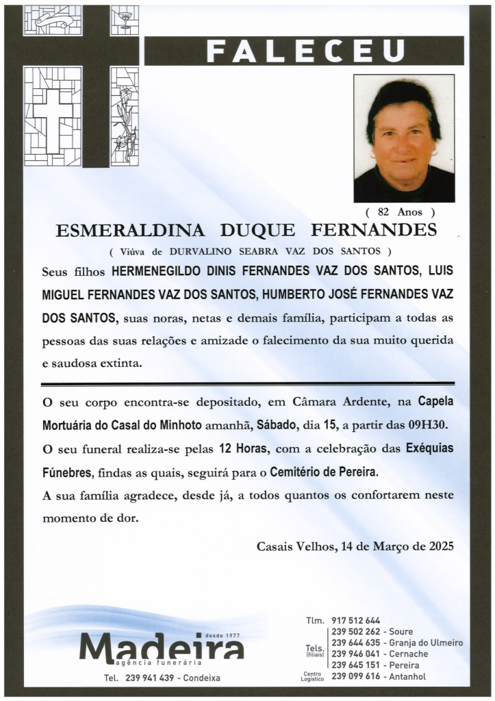 Falecimento da Sr.ª Esmeraldina Duque Fernandes