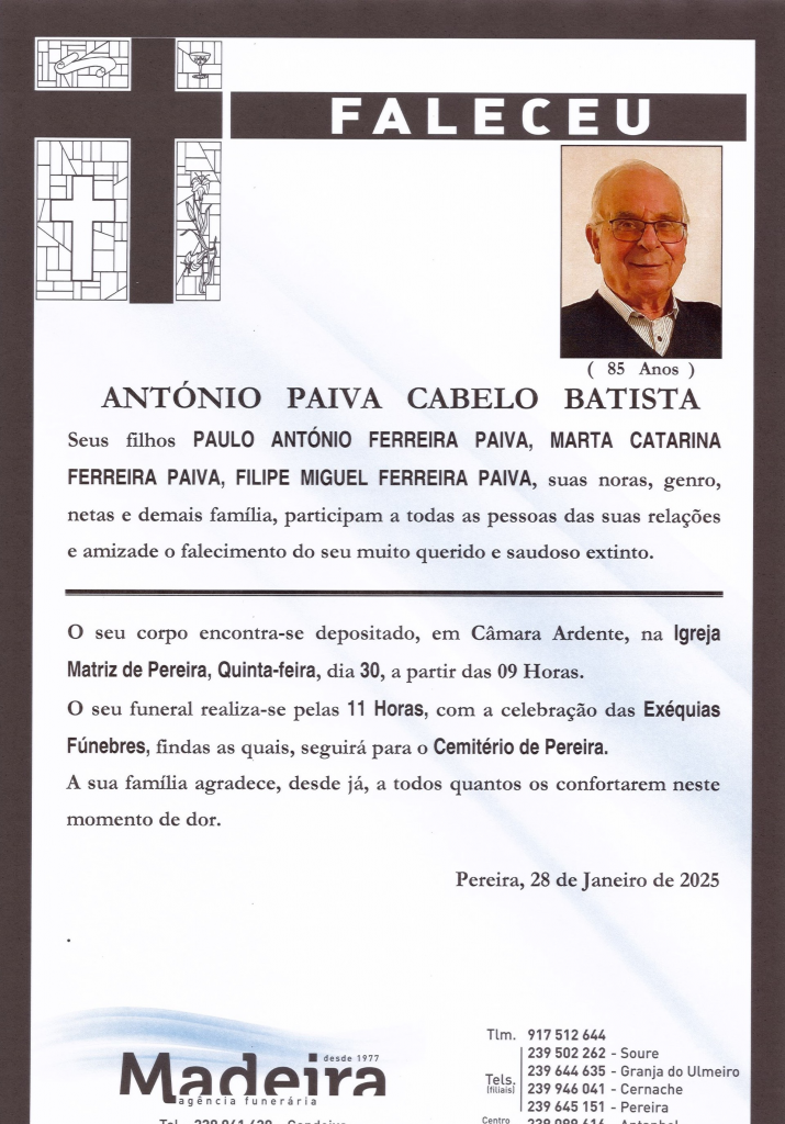 Falecimento do Sr. António Paiva Cabelo Batista