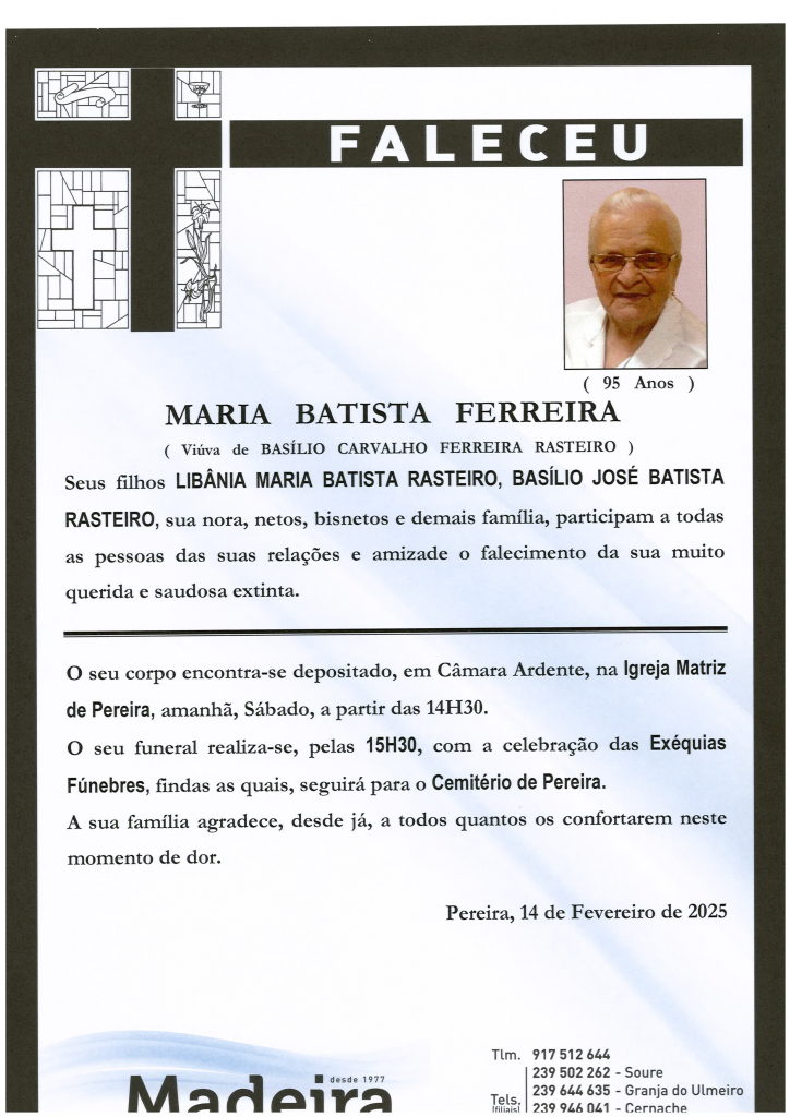 Falecimento da Srª. Maria Batista Ferreira