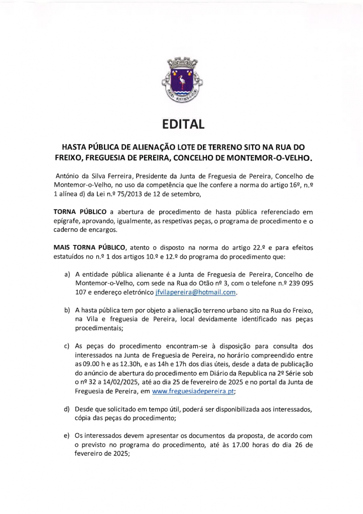 Edital – Hasta Pública de alienação de lote de terreno