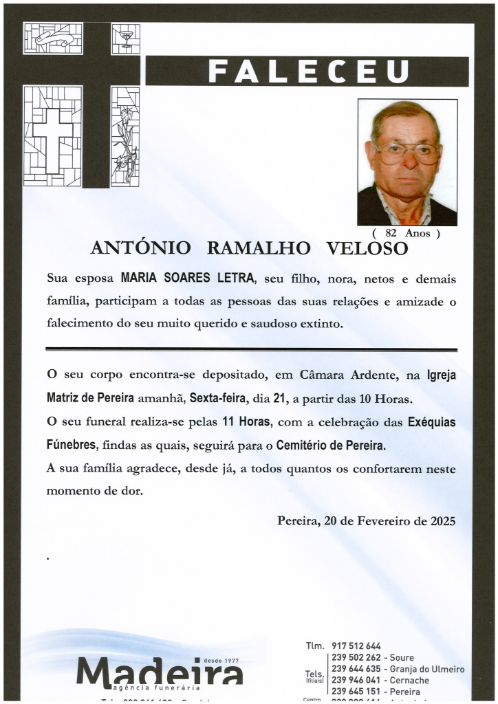Falecimento do Sr. António Ramalho Veloso