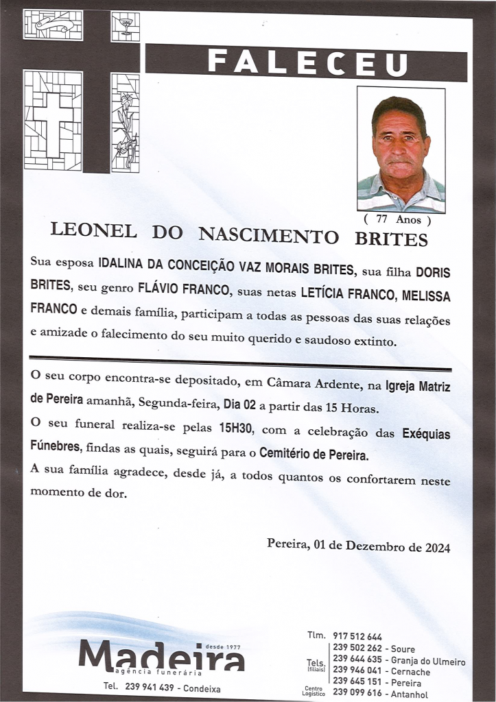 Falecimento do Sr. Leonel do Nascimento Brites