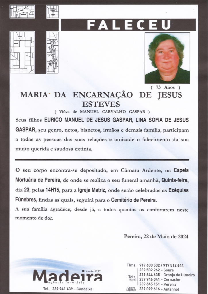 Falecimento da Sr.ª Maria da Encarnação de Jesus Esteves