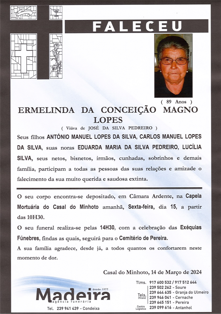 Falecimento da Sr.ª Ermelinda da Conceição Magno Lopes