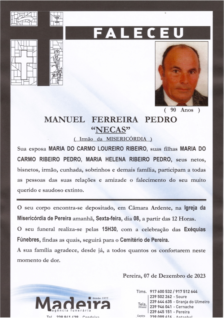 Falecimento do Sr. Manuel Ferreira Pedro