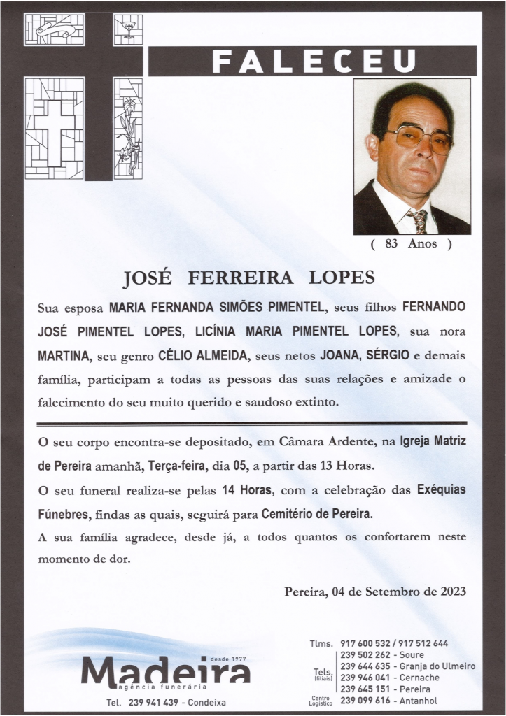 Falecimento do Sr. José Ferreira Lopes