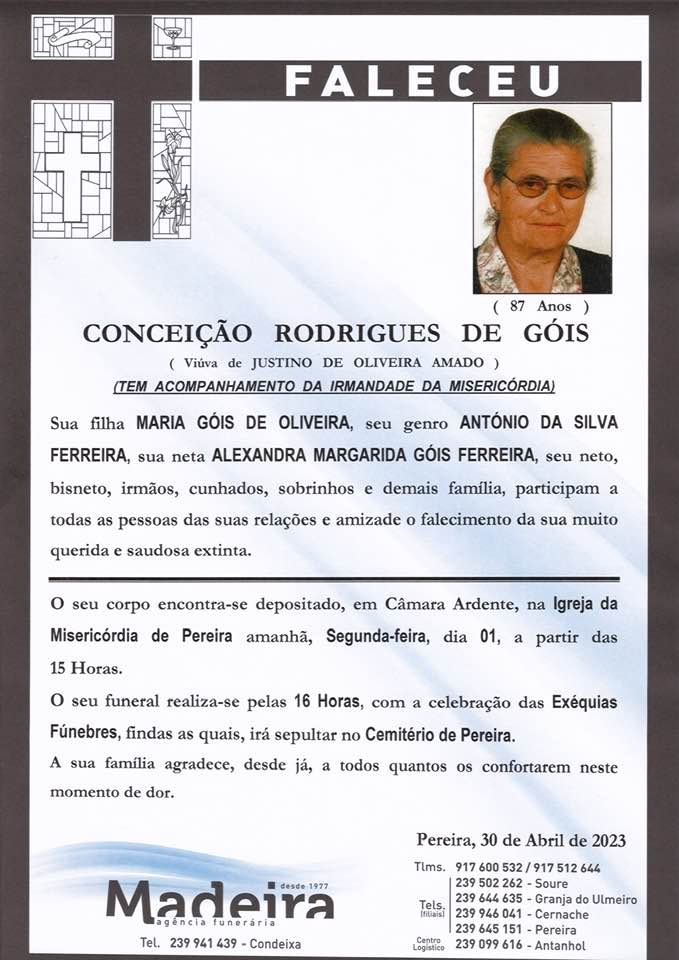 Falecimento da Sr.ª Conceição Rodrigues de Góis
