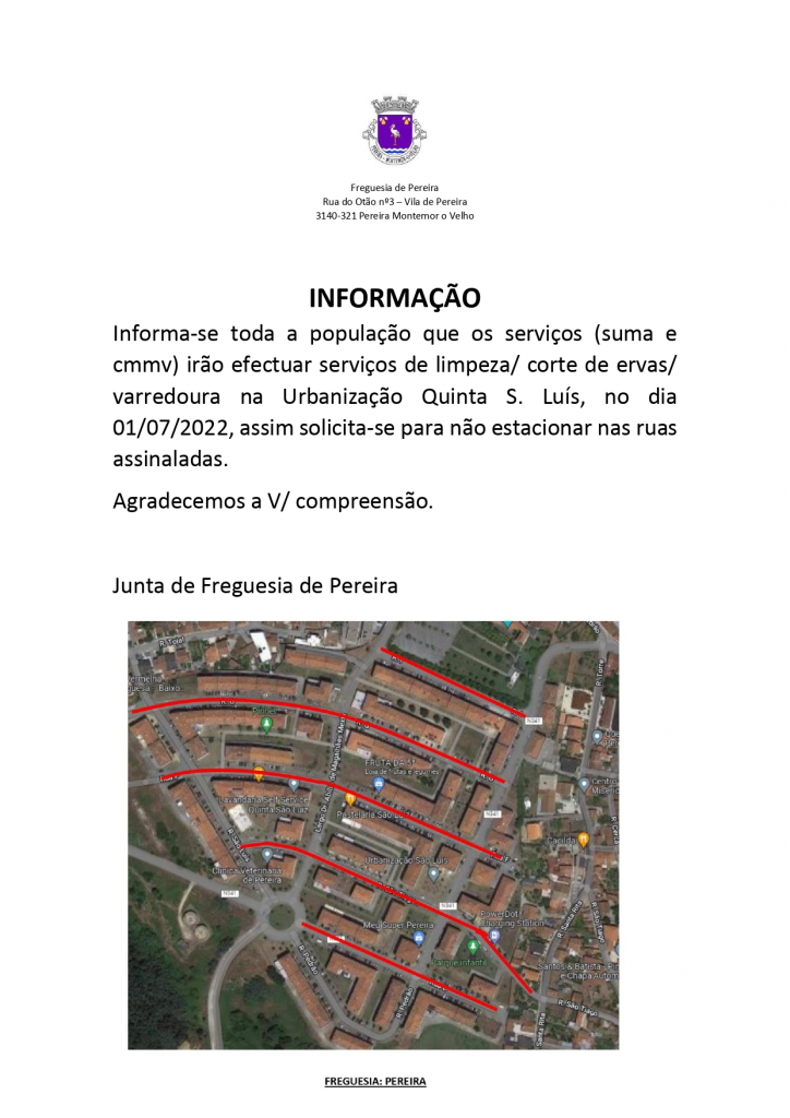 Informação - Serviços de limpeza - Corte de ervas - Varredoura na...