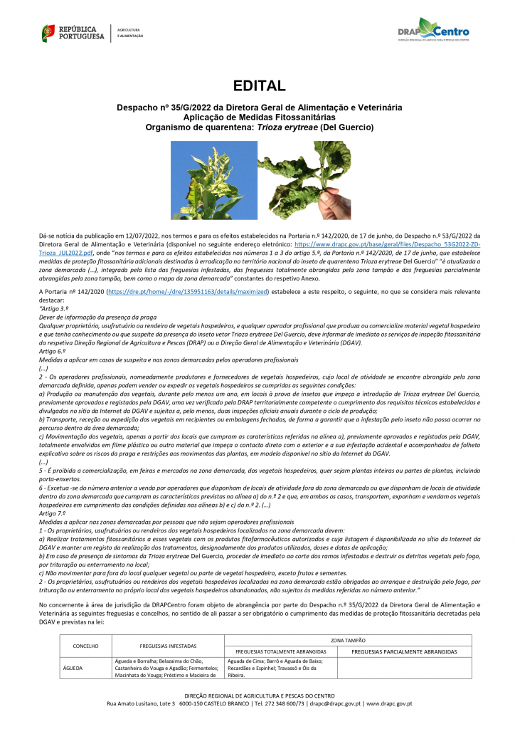 Edital – Citrinos Infestados com a Psila Africana dos Citrinos – Trioza...