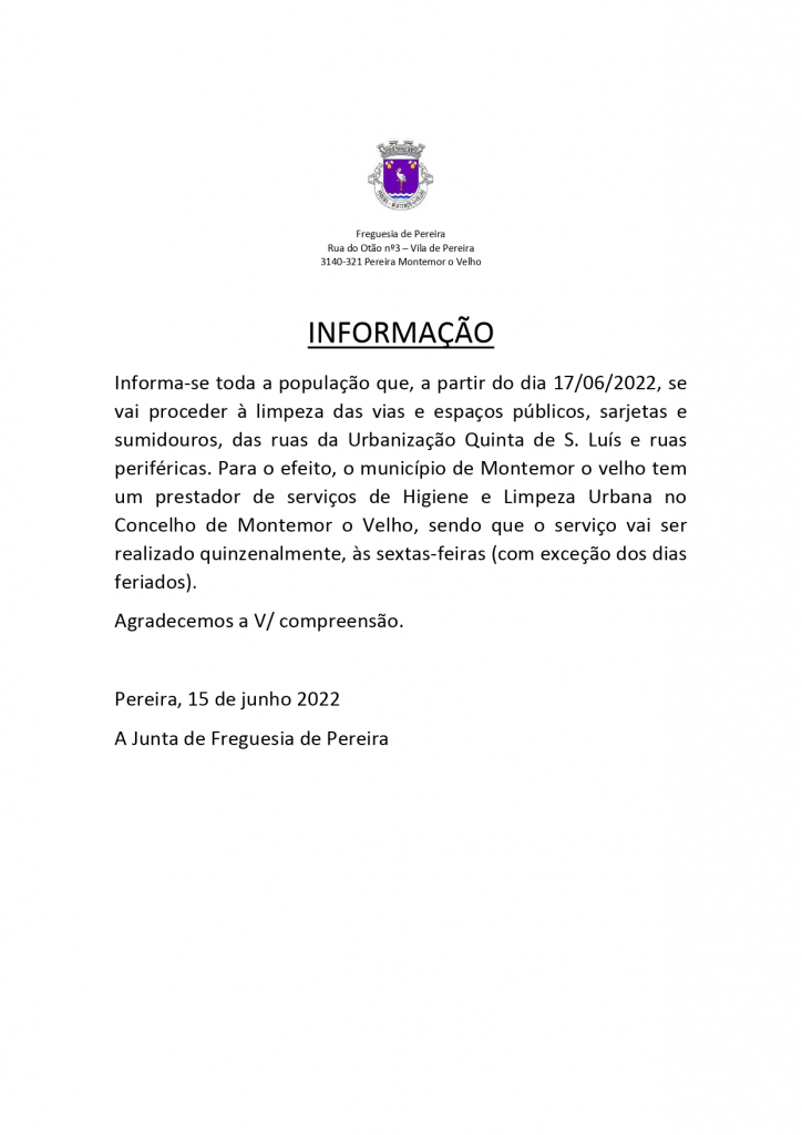 Informação - Limpeza de Espaços na Urbanização