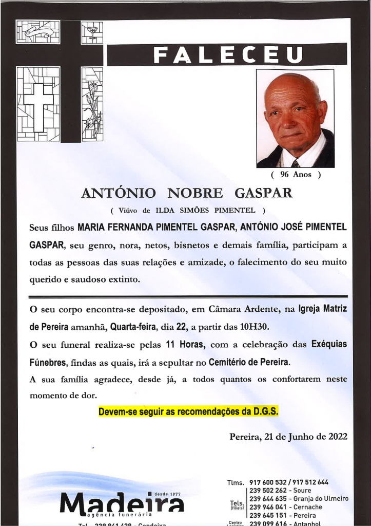 Falecimento do Sr. António Nobre Gaspar