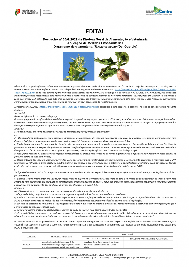 Edital - Aplicação de Medidas Fitossanitárias