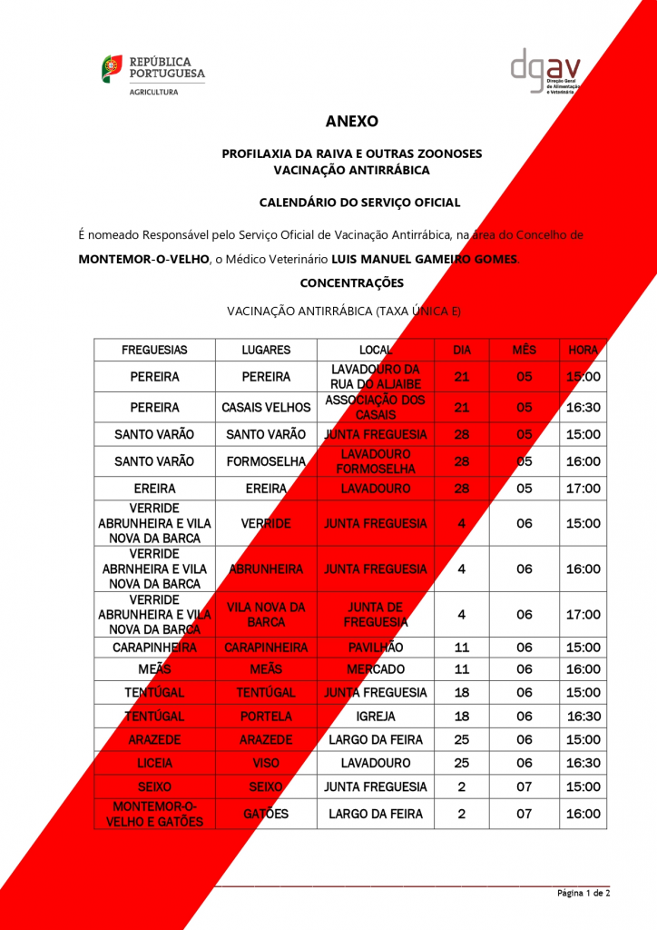 Edital – Profilaxia da raiva e outras zoonoses - Vacinação antirrábica