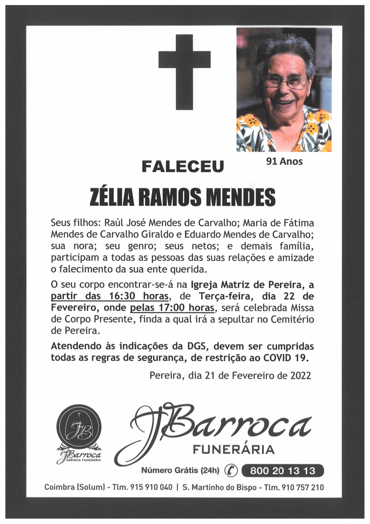 Falecimento da Srª. Zélia Ramos Mendes