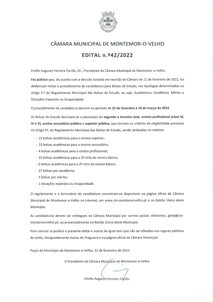 C.M.M.M.V - Edital n.º 42/2022 - Abertura do prazo de candidatura das...