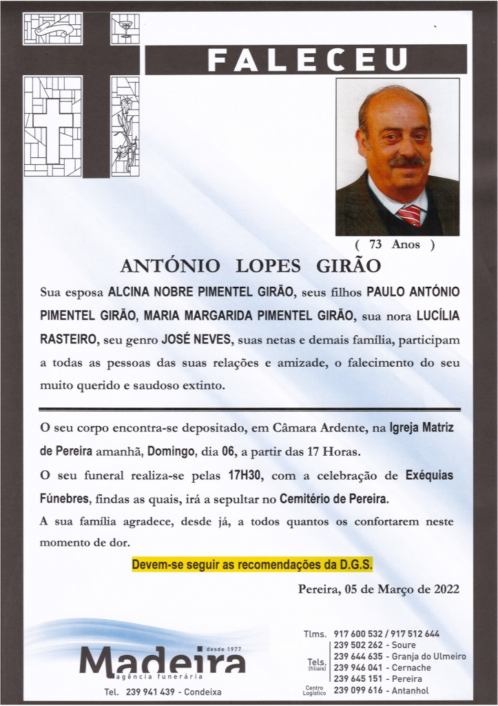 Falecimento do Sr. António Lopes Girão