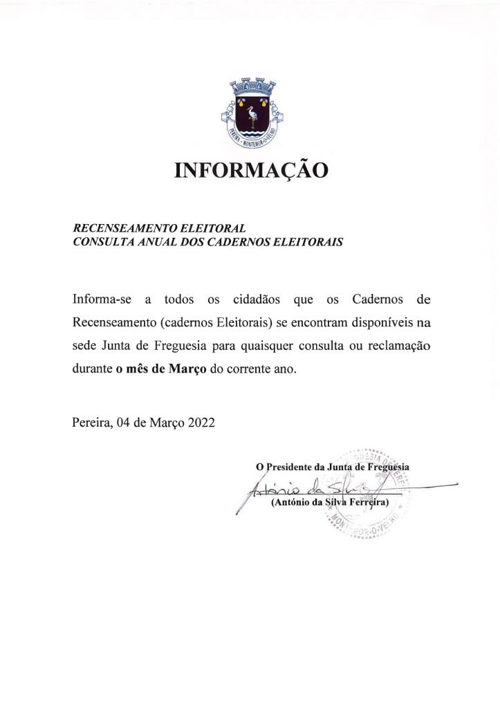 Informação - Recenseamento Eleitoral - Consulta anual dos cadernos eleitorais
