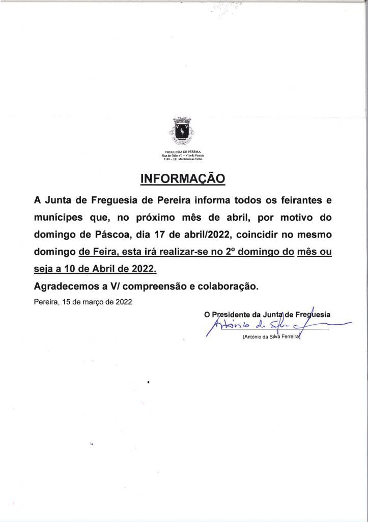 Informação - Feira mês de abril