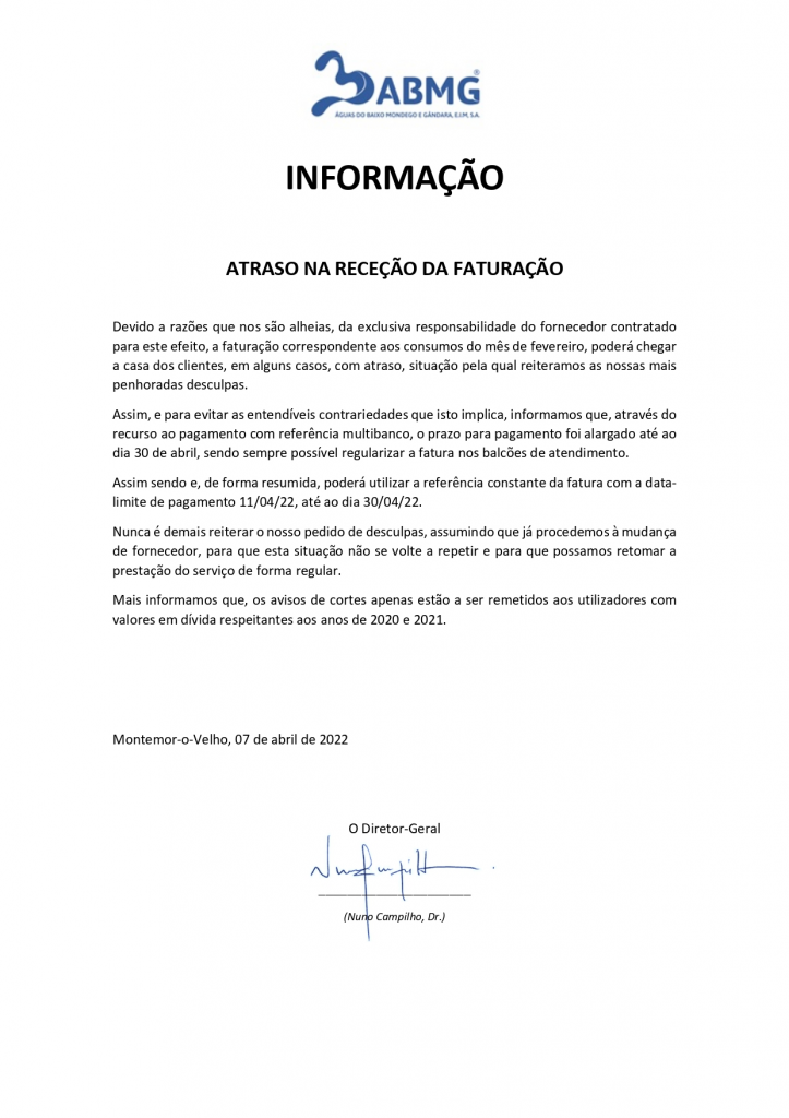 Informação - Atraso na receção da facturação