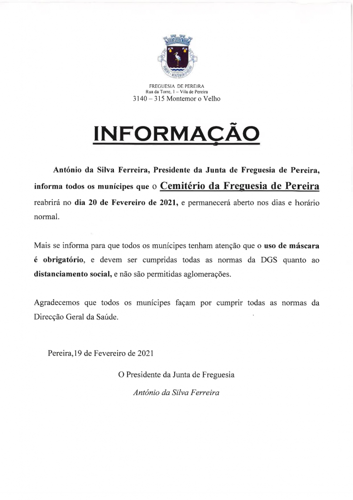 Informação - Abertura do Cemitério