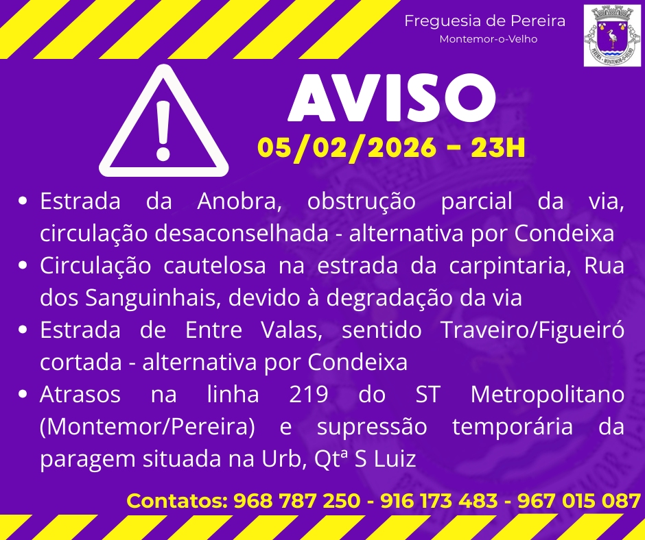 Município de Montemor o Velho Atualização - Vias condicionadas – A14