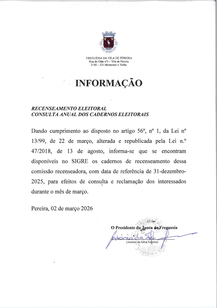 Informação - Consulta anual dos Cadernos Eleitorais
