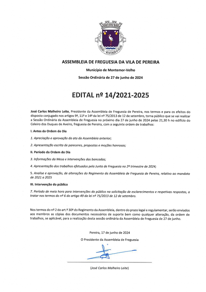 Edital n.º 14/2021-2025 - Assembleia de Freguesia