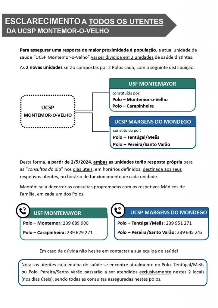 Comunicado da Unidade Local de Saúde do Baixo Mondego