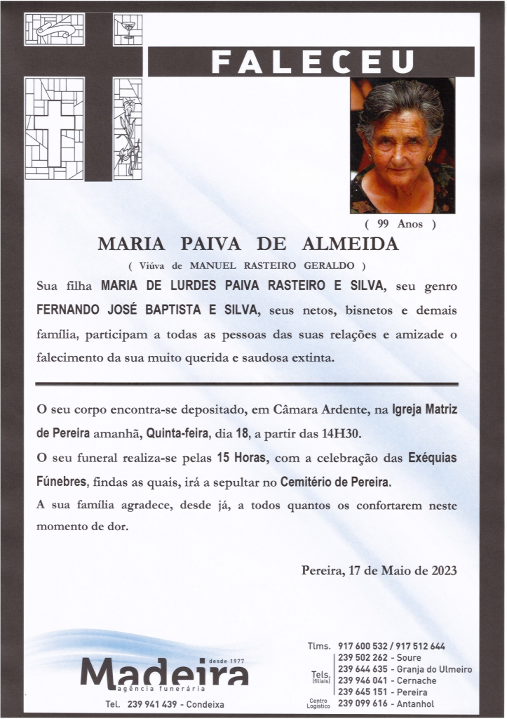 Falecimento da Sra. Maria Paiva de Almeida