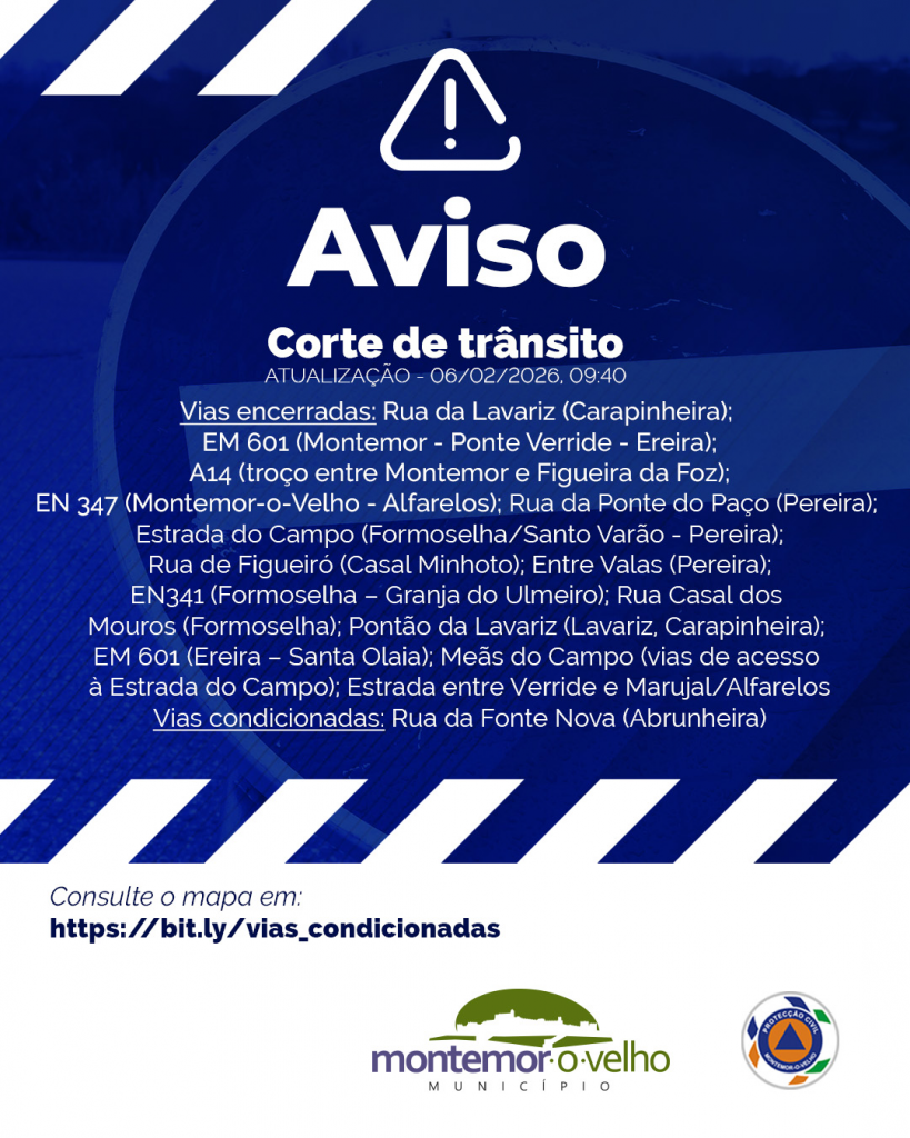 Informação - Lista atualizada de estradas condicionadas no concelho