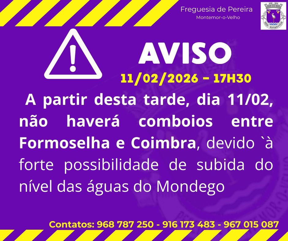 Aviso - Ligação ferroviária Formoselha – Coimbra-B a partir de 09 de...