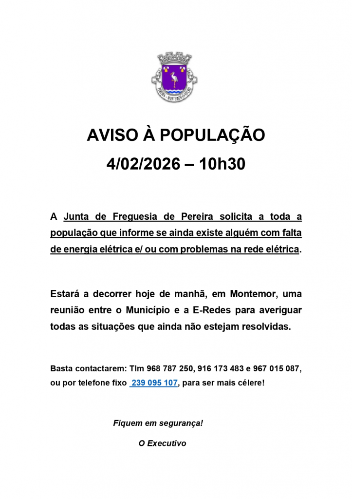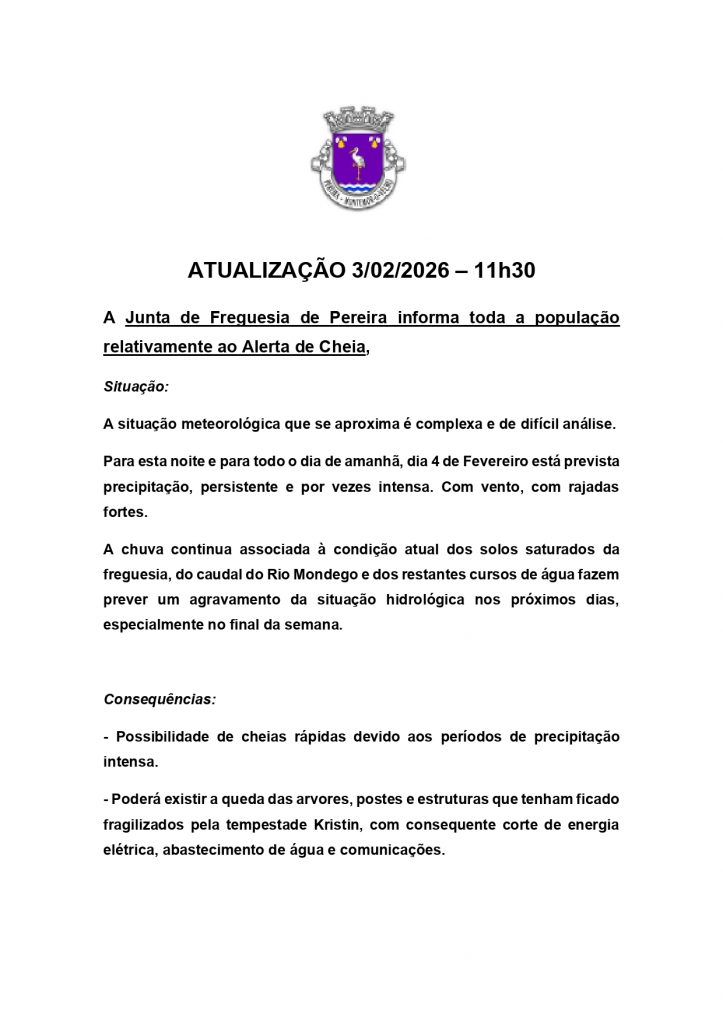 Informação - Abertura do procedimento de registo de danos pelas intempéries