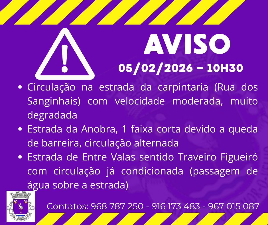 Informação - Lista atualizada de estradas condicionadas no concelho