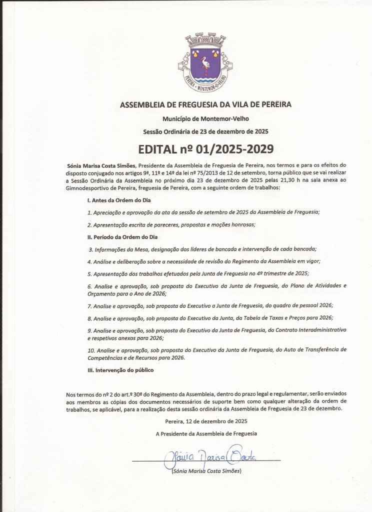 Edital n.º 1/2025-2029 - Sessão Ordinária de 23/12/2025